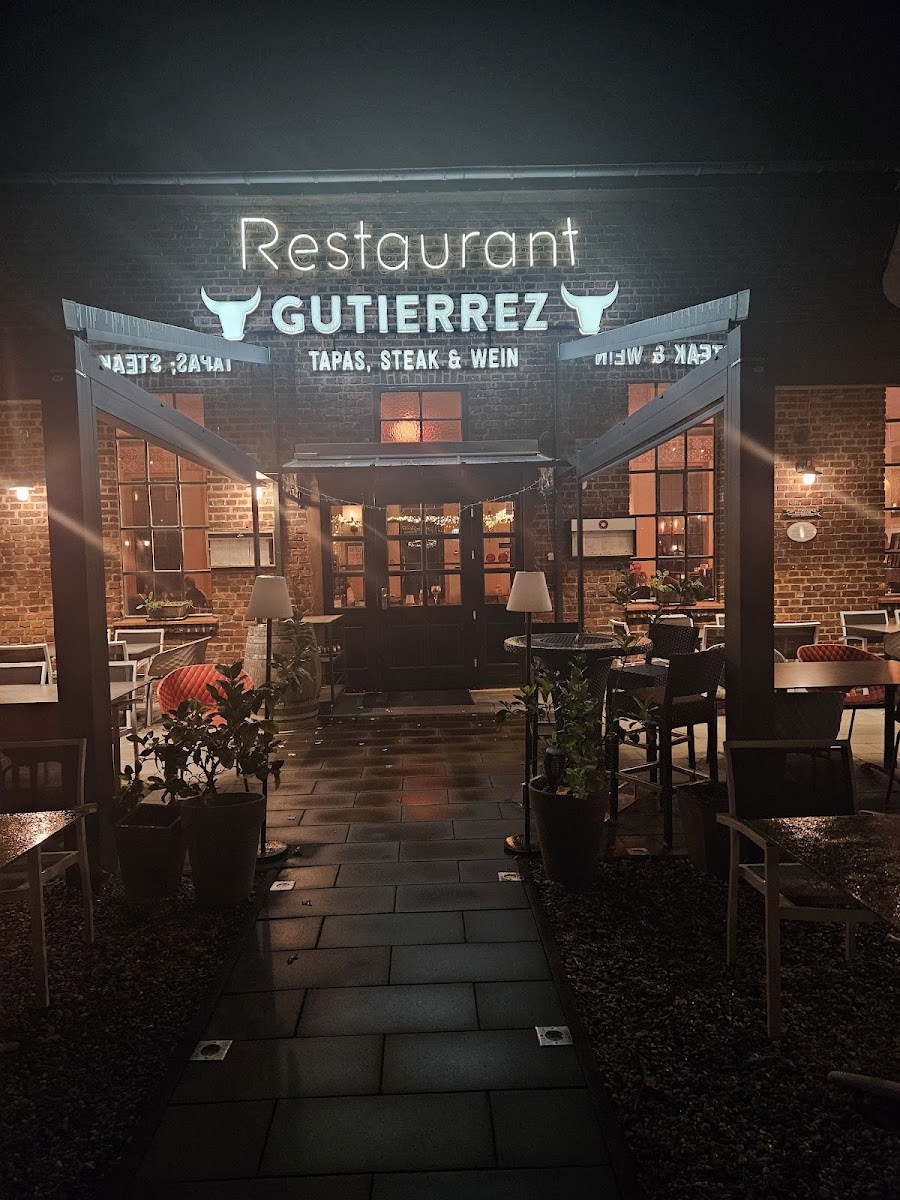 We went to Gutierrez for a date night with my boyfriend. I loved the place - very spacey, plenty of light, nice decorations that take you on holiday to Spain. The staff was extremely fun and nice. I loved particularly two types of tapas from the menu: Garnelen in Knoblauchsauce and aubergines with honey). Definitely want to go there again to try paella (needs to be preordered a day in advance). Great place to spend time in Porz.